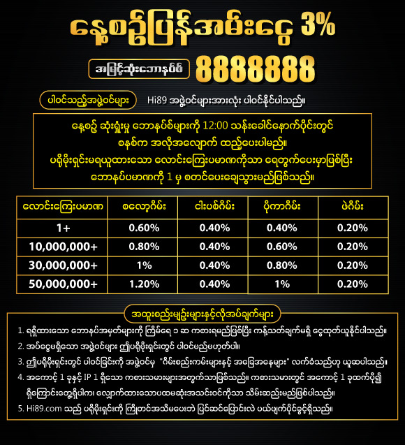 🎰 နေ့စဥ်ပြန်အမ်းငွေ 3%